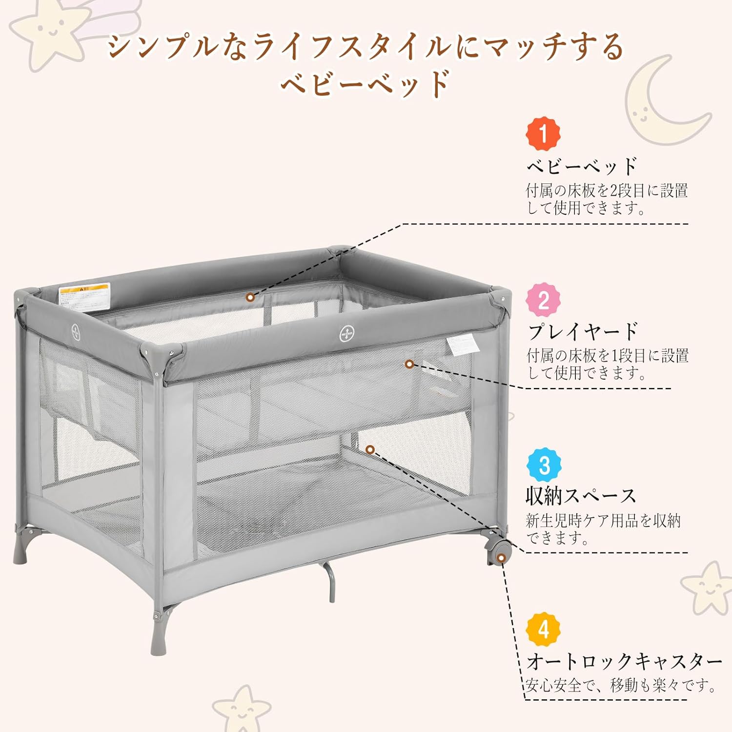 豪華な装飾やブランドロゴの付加価値よりも、日々のオムツ替えのしやすさや、掃除の際のスムーズな移動といった『実益』を重視する方にとって、これほど頼もしい選択肢はありません。グレーを基調とした落ち着いた佇まいは、どのような部屋にも静かに溶け込み、主役である赤ちゃんの健やかな眠りを守ります。