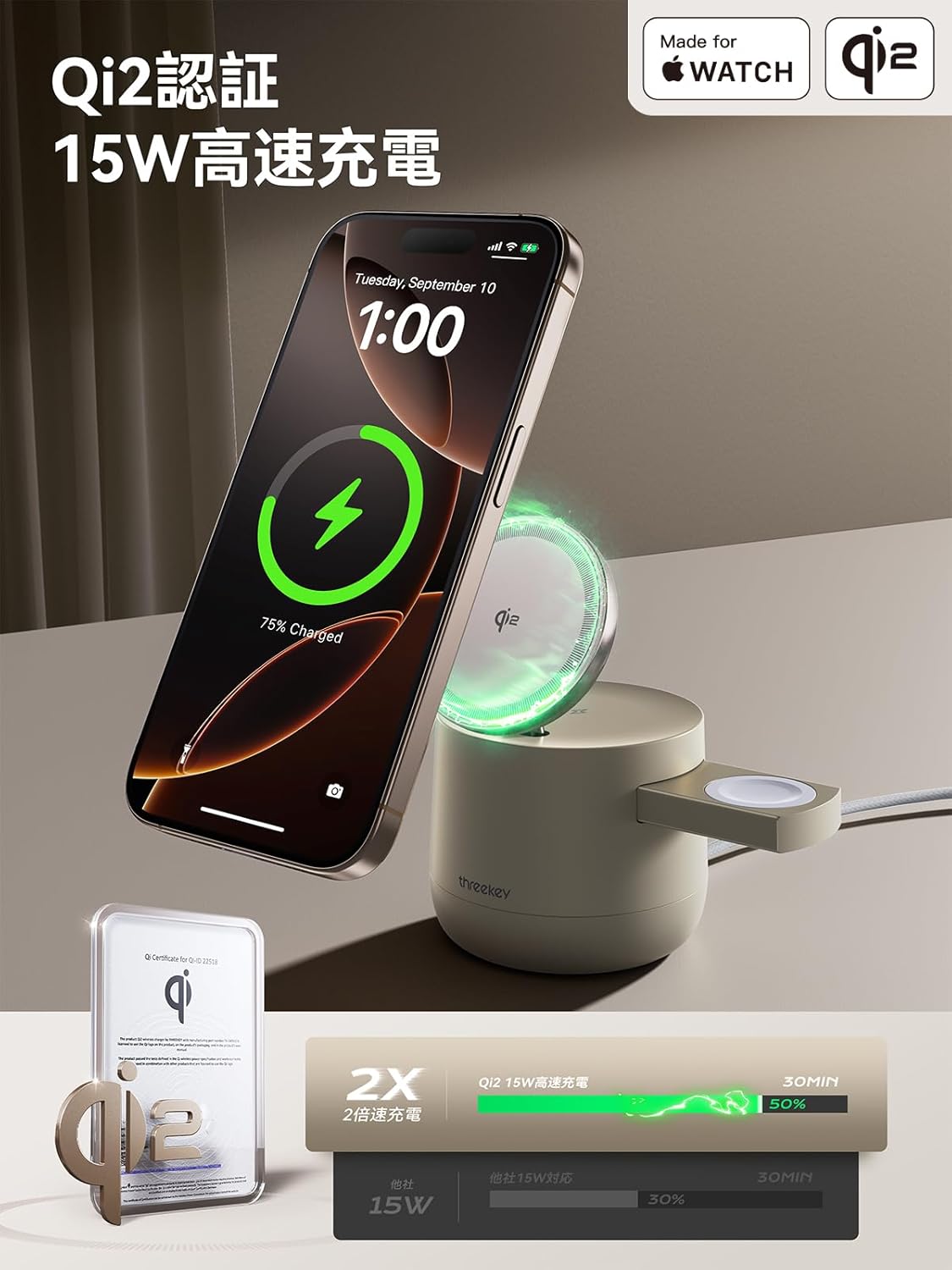 - 特徴1:Qi2認証15Wワイヤレス急速充電、METI公式認証、PSE公式認証