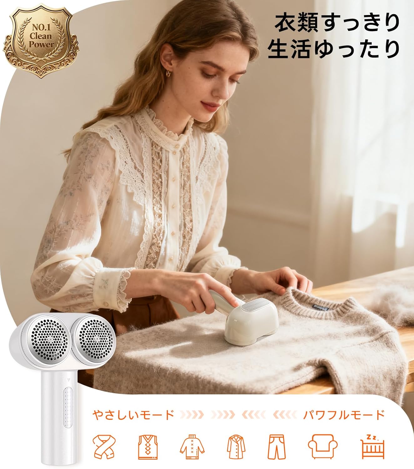 本製品の最大の魅力は、2025年最新モデルとして「圧倒的な処理効率」と「洗練された審美性」を完全に融合させた点にあります。一般的な毛玉取りが「仕方なく使う道具」であるのに対し、本機は「使いたくなるガジェット」へと昇華されています。ステンレス鋼を採用した精密な刃は、生地へのダメージを最小限に抑えつつ、硬い毛玉も一瞬でカットする切れ味を誇ります。これにより、衣類ケアの時間が従来の半分以下に短縮されるだけでなく、まるで新品のような滑らかな質感を蘇らせます。パールホワイトの筐体は光の当たり方で表情を変え、日々のルーティンに「美しさを愛でる」という付加価値を提供します。