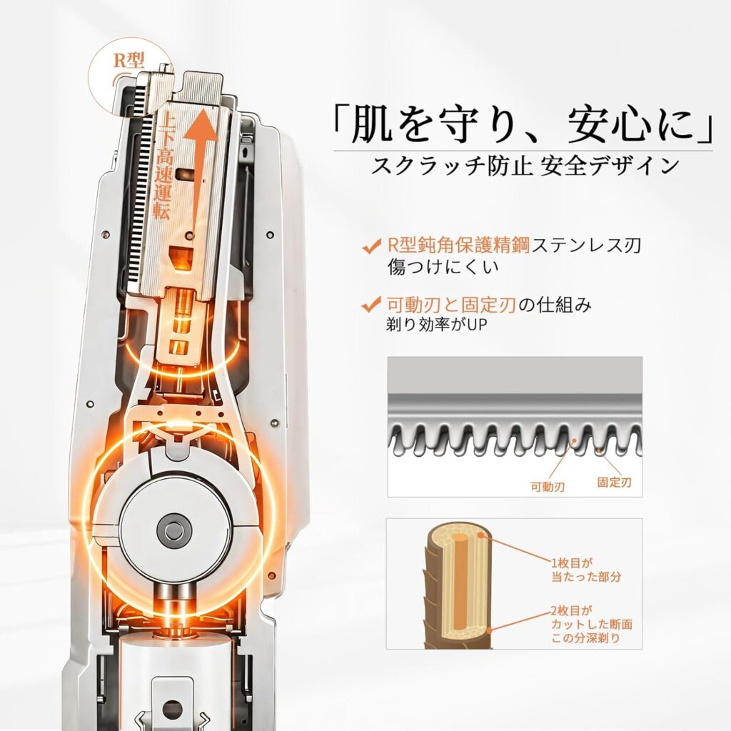 - 「ステンレス鋼のブレードが肌に優しくフィットし、なめらかな剃り心地で肌荒れしませんでした。」