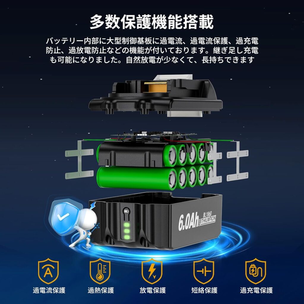 マキタ純正のバッテリーと、Uionvotに代表される互換バッテリーを比較する際、最も大きな違いは安全性と信頼性の担保にあります。