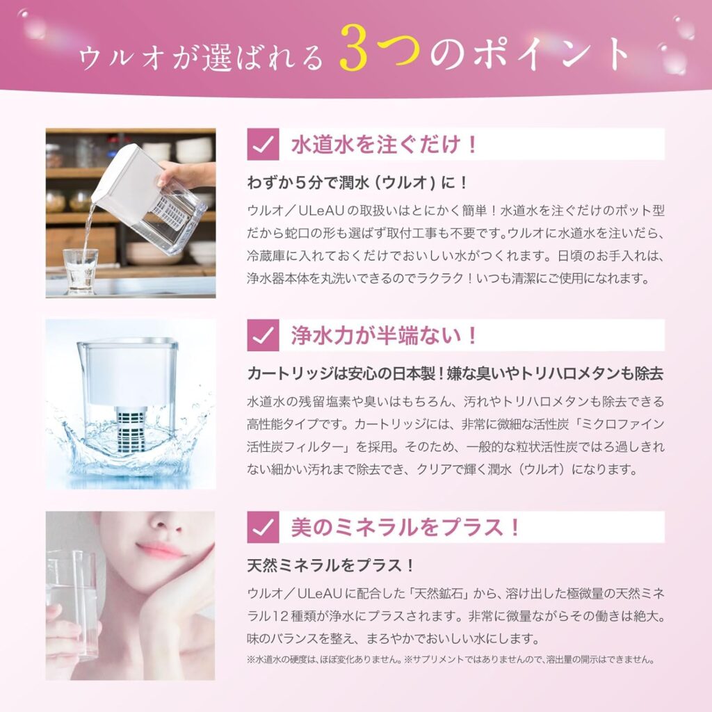 ULeAU(ウルオ)は、そんな現代人の切実な願いに応えるために生まれたブランドです。単に汚れを取り除く『引き算』の浄水だけでなく、ミネラルを整える『足し算』の思考で作られたこのプロダクトが、なぜこれほどまでに注目されているのか。その背景にある企業の情熱と、実際の使い勝手を深掘りします。