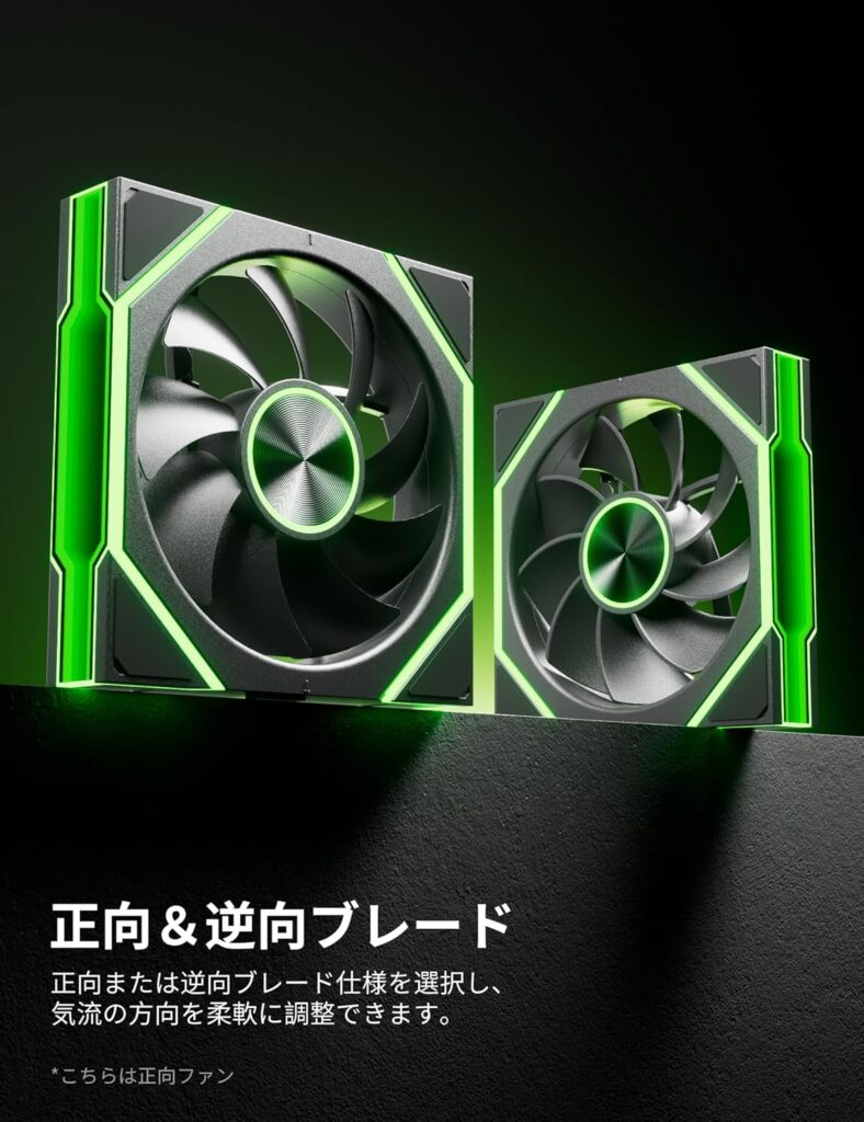 - 正向・逆向ブレード採用:吸気・排気を柔軟に設定可能、1つのファンユニットで吸気・排気の方向を自由に選択可能。購入の際は用途に合わせた方向の選択が必要