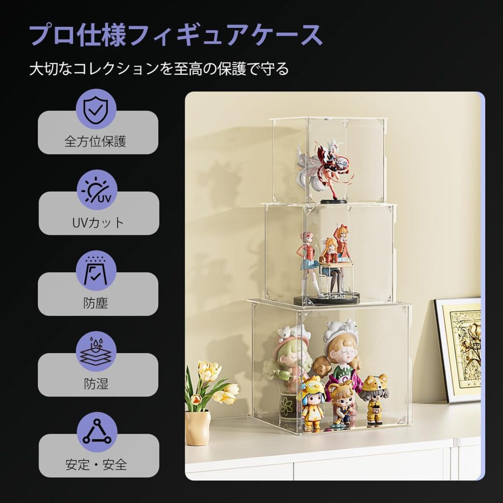 99.5%の紫外線遮蔽率という盾で推しの色彩を守り、100%新素材アクリルの澄み切った窓越しに、フィギュア本来の美しさを惜しみなく見せてくれます。