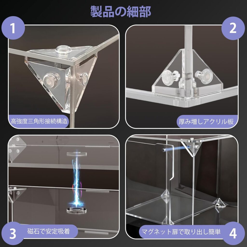 「磁吸式の前扉が便利すぎます。片手で開けられるので、推しの衣装替えやポーズ変更のときもストレスなく作業できて感動しました。」
