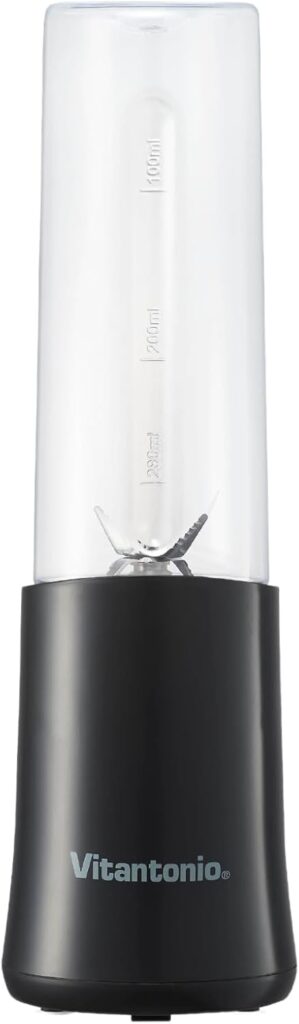 この製品の最大の武器は、「準備から片付けまでの心理的ハードルを極限まで下げている」点にあります。一般的なミキサーは、ガラス容器が重かったり、底の刃に手が届きにくかったりと、使うたびに少しの決意を必要とします。しかし、VBL-7は幅わずか7.6cmというスリム設計。500mlペットボトルより一回り太い程度のサイズ感であり、キッチンの隅に置いても邪魔になりません。
