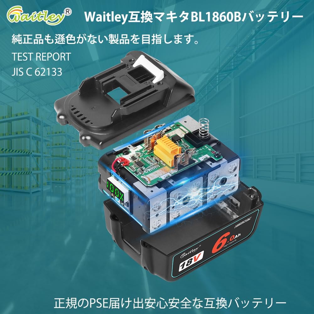 商品紹介:「waitley マキタ BL1860 6.0Ah互換 バッテリー 2個セット」