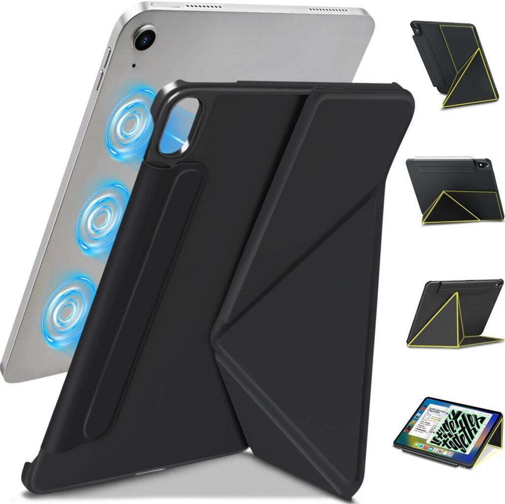 この商品の最大の強みは、徹底的に無駄を削ぎ落とした「180g」という驚異的な軽さと、日々の使い勝手を直感的に向上させる「オートスリープ/ウェイク機能」の搭載にあります。一般的なタブレットケースは頑丈さを追求するあまり重量が増し、本来iPadが持っている携帯性を損なってしまうことが少なくありません。しかし、本製品は厚みをわずか1.9cmに抑えたスリムなフォームファクタを採用しており、まるで薄いノートを一冊持ち歩くような軽快さを実現しています。また、カバーの開閉に連動して画面が自動でオン・オフされる特別機能は、電源ボタンを押すという小さな手間を省くだけでなく、タブレットのバッテリー寿命を長持ちさせるという実利をもたらします。一切の過剰な装飾を排除したシックなブラックのカラーリングは、オフィスからカフェまでどんな環境にも馴染み、ユーザーの洗練されたライフスタイルを静かにサポートします。