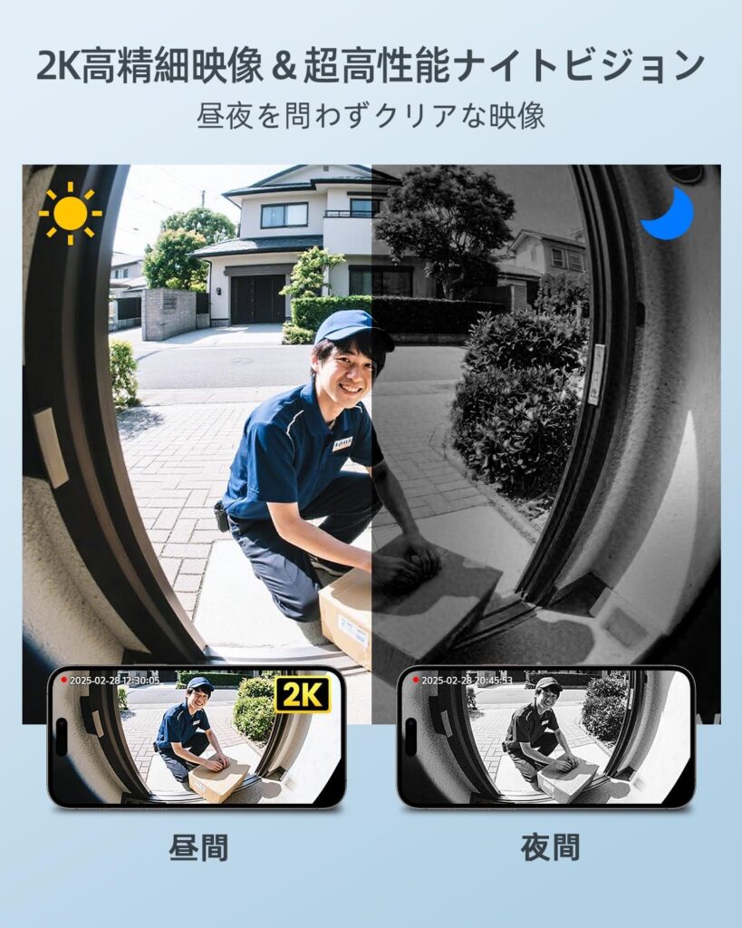 「1440pの画質は想像以上に鮮明です。日中は訪問者の顔がはっきりと分かりますし、荷物のラベルも読めるレベル。この価格でこの画質は素晴らしい。」