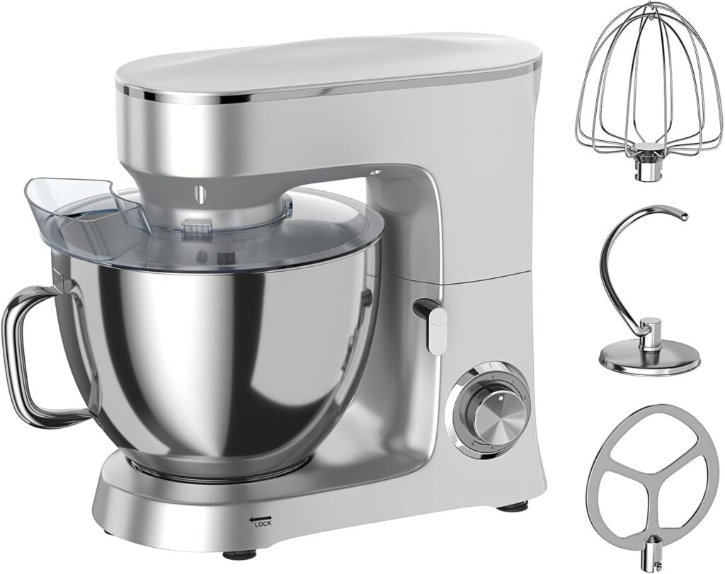 この商品の最大の魅力は、なんといっても「家庭用の常識を覆す8リットルという巨大な容量」にあります。一般的な家庭用スタンドミキサーが4〜5リットル前後であるのに対し、WY019はその倍近い容量を持っています。これは、一度に大量のパン生地やクッキー生地を仕込みたい「作り置き派」や、大家族、あるいは小さなカフェを営むセミプロ層にとって、喉から手が出るほど欲しいスペックです。