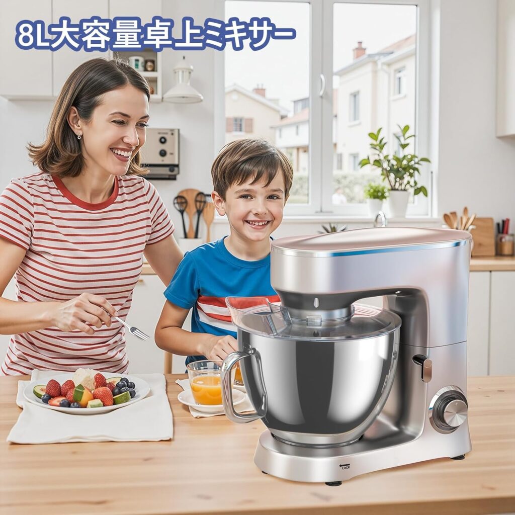 Amazonなどでよく見かける「Vospeed」や「Aucma」といった他の中国製スタンドミキサーと比較すると、価格帯は似通っています。しかし、ここでも差別化要因となるのは「8リットルという特大容量」です。