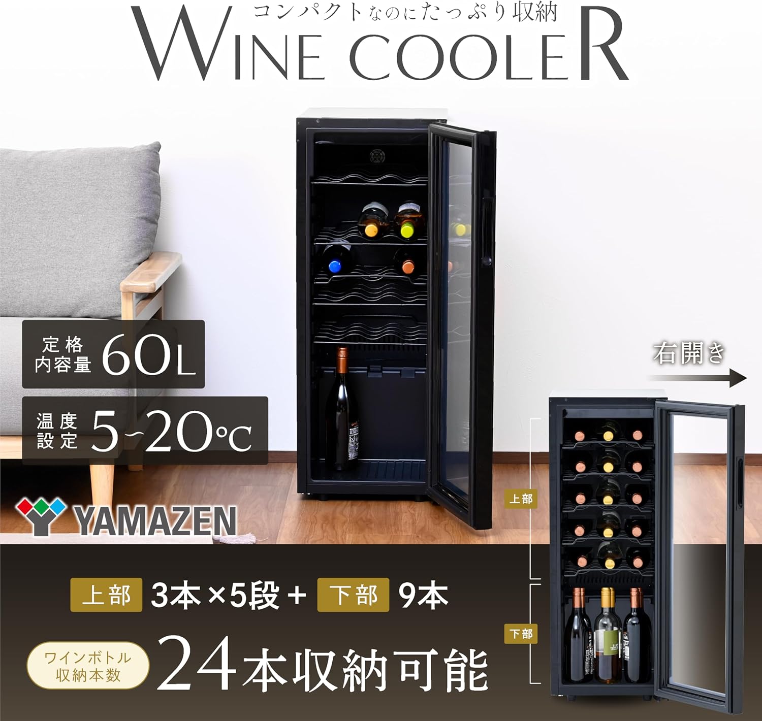 商品紹介: YAMAZEN ワインセラー YFWC-60L(B)