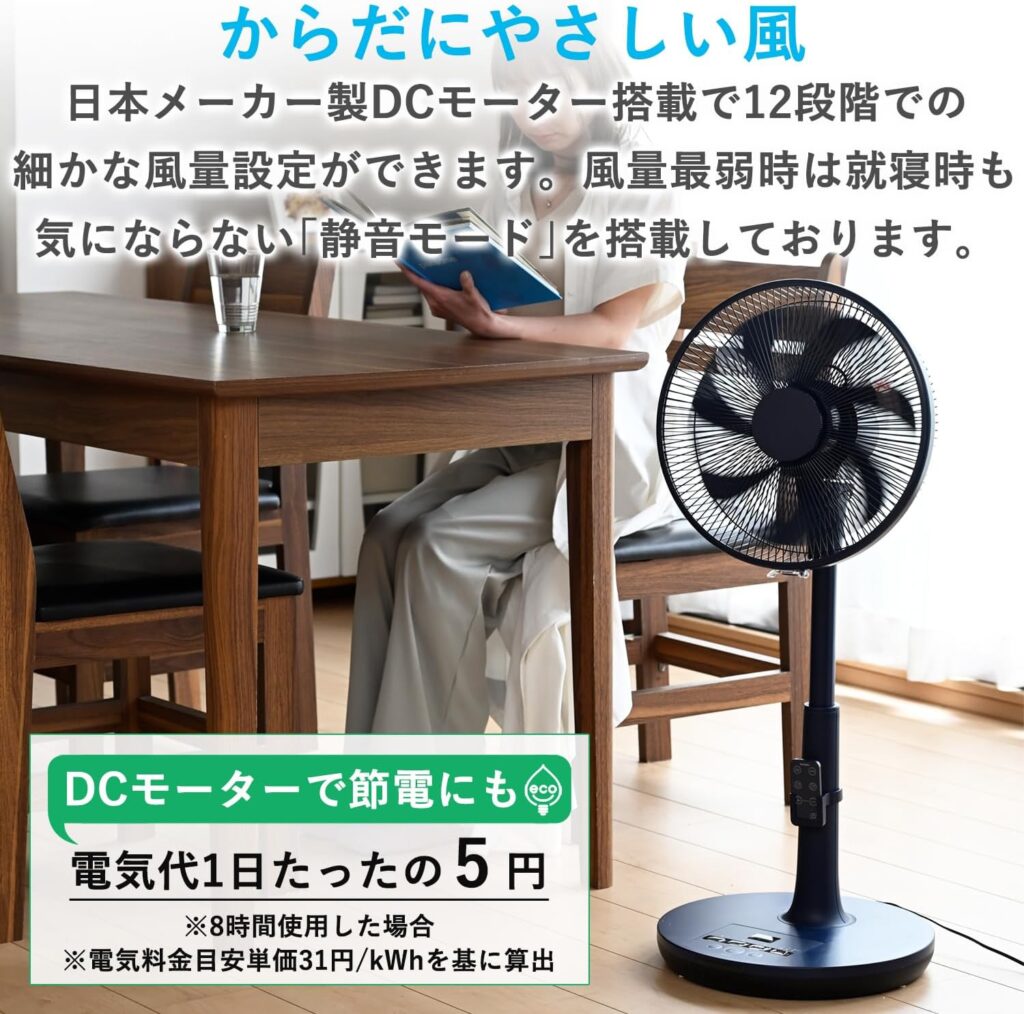「DCモーターのおかげで、寝ている間も音が全く気にならないほど静かです」