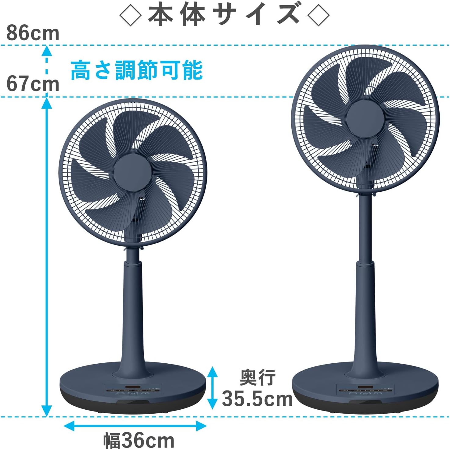 さらに、このモデルが100点満点と言える理由は、その「リズムの多様性」にあります。単に風を送るだけでなく、自然界の風に近い揺らぎを再現できるため、長時間風に当たっていても体がだるくなりにくいのです。また、ネイビーというカラー選択も秀逸です。一般的な白い扇風機がどうしても漂わせてしまう「生活感」を抑え、モダンな家具やヴィンテージ調の部屋にも馴染む、洗練された佇まいを演出しています。節電効果についても、最大消費電力がわずか20W程度という点は、夏場の家計管理において非常に強力なアドバンテージとなります。