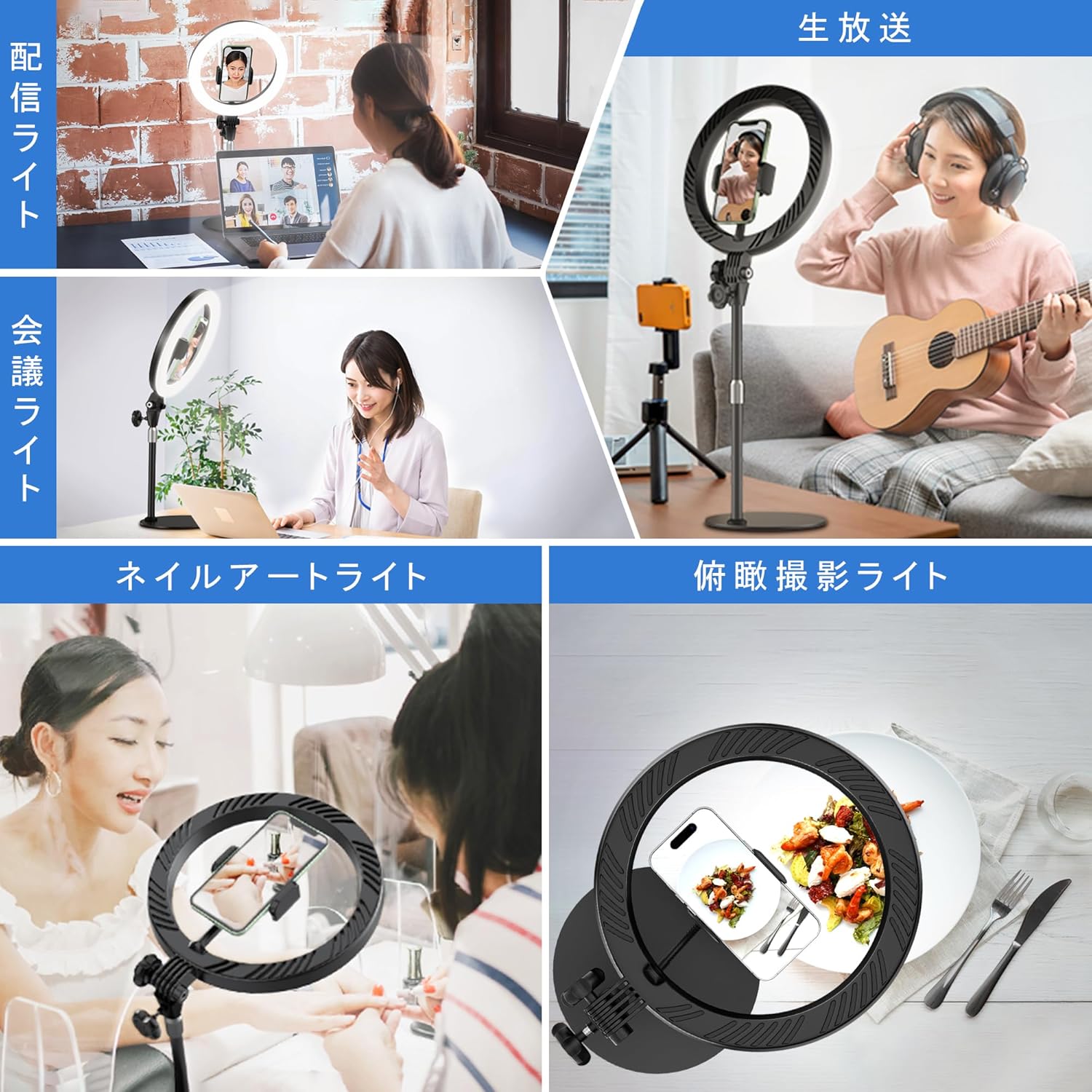 さらに、「10インチ」というサイズは、デスクトップ環境で顔全体に均一な光を当てるのに最適化された黄金比と言えます。リング状の光が目の奥にキャッチライト(天使の輪)を生み出し、瞳を輝かせ、表情を生き生きと見せてくれます。単に顔を明るくするだけでなく、影を消し、肌の質感を滑らかに見せるプロの技が、誰でも簡単に手に入るのです。漆黒のデザインも洗練されており、PC周りの景観を損なうことなく、高いレベルで実用性と美観を両立させています。
