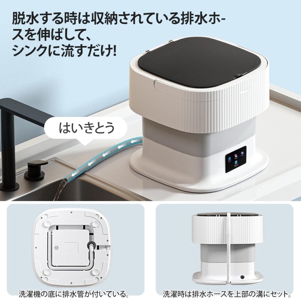給水はバケツやシャワーを使って自分で行う必要があり、排水もホースはあるものの、重力任せの自然排水です。また、多くの簡易洗濯機と同様に、強力な脱水機能(遠心分離による水切り)は期待できません。あくまで「洗う・すすぐ」工程を自動化するものであり、最後の「絞る」工程には人の手が必要です。この点を理解せずに「全自動洗濯機の小さい版」だと思って購入すると、手間の多さに不満を感じる可能性があります。