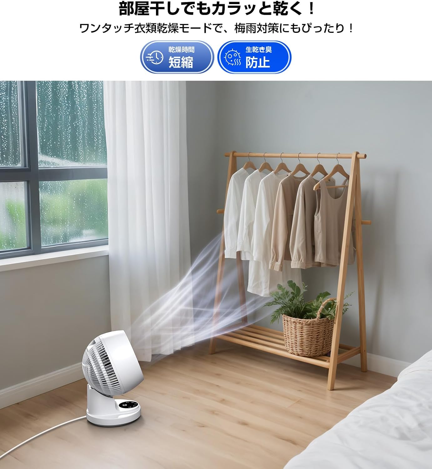 - 特徴:タイマー, ポータブル, 安全認証済み, 静音運転, 首振り