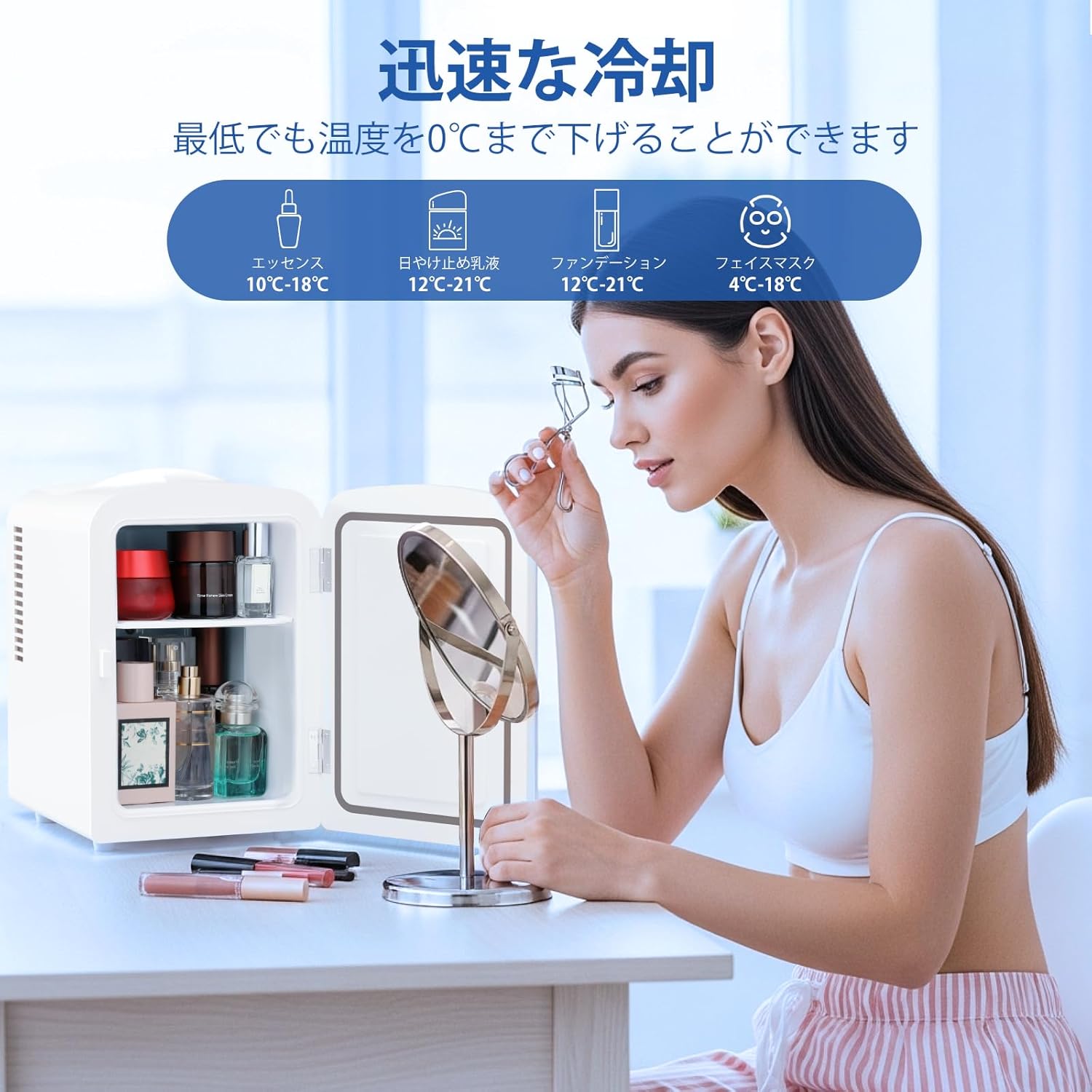 - 「化粧品専用の冷蔵庫として購入しました。フェイスパックや美容液を冷やしておくと、お風呂上がりのケアがひんやりして気持ちいいです」