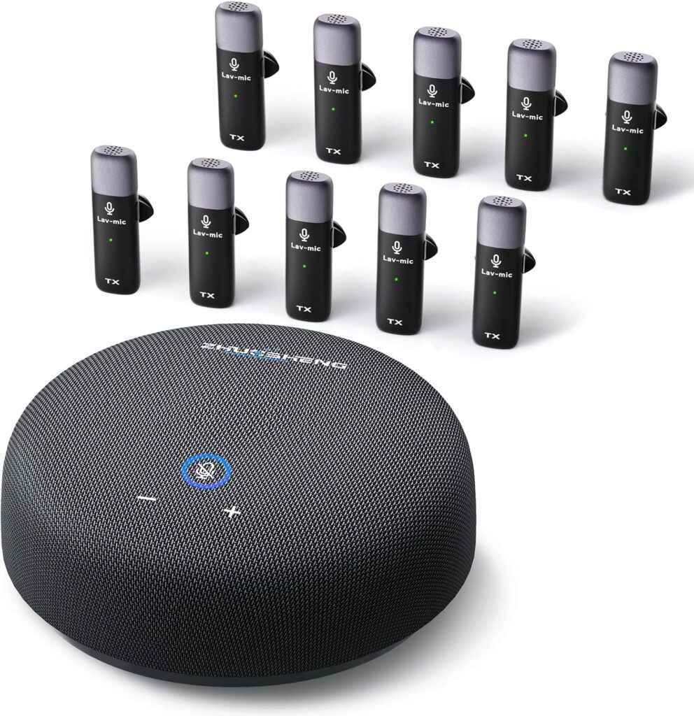 対するZHUOSHENG CS02は、本体に内蔵された全指向性マイクで360度全方向から集音するシンプルなスタイルです。ピンマイクを個別に充電したり管理したりする手間がなく、設置すればすぐに使える手軽さが魅力です。