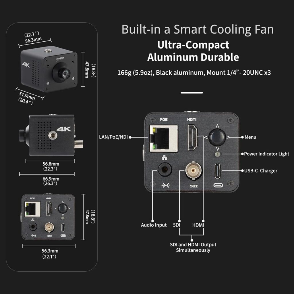 - 特徴: 4K 8MP 歪みのない M12 レンズ付属, NDI、HDMI、SDI、PoE、CS マウント、CS – M12 アダプター、CS – C アダプター, タリーライト, リモコン/ZowieUI, 交換レンズ